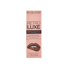 Комплект Makeup Revolution: Retro Luxe Metallic Течно червило Worth It 55 ml + Retro Luxe Молив за устни Worth It 1 g