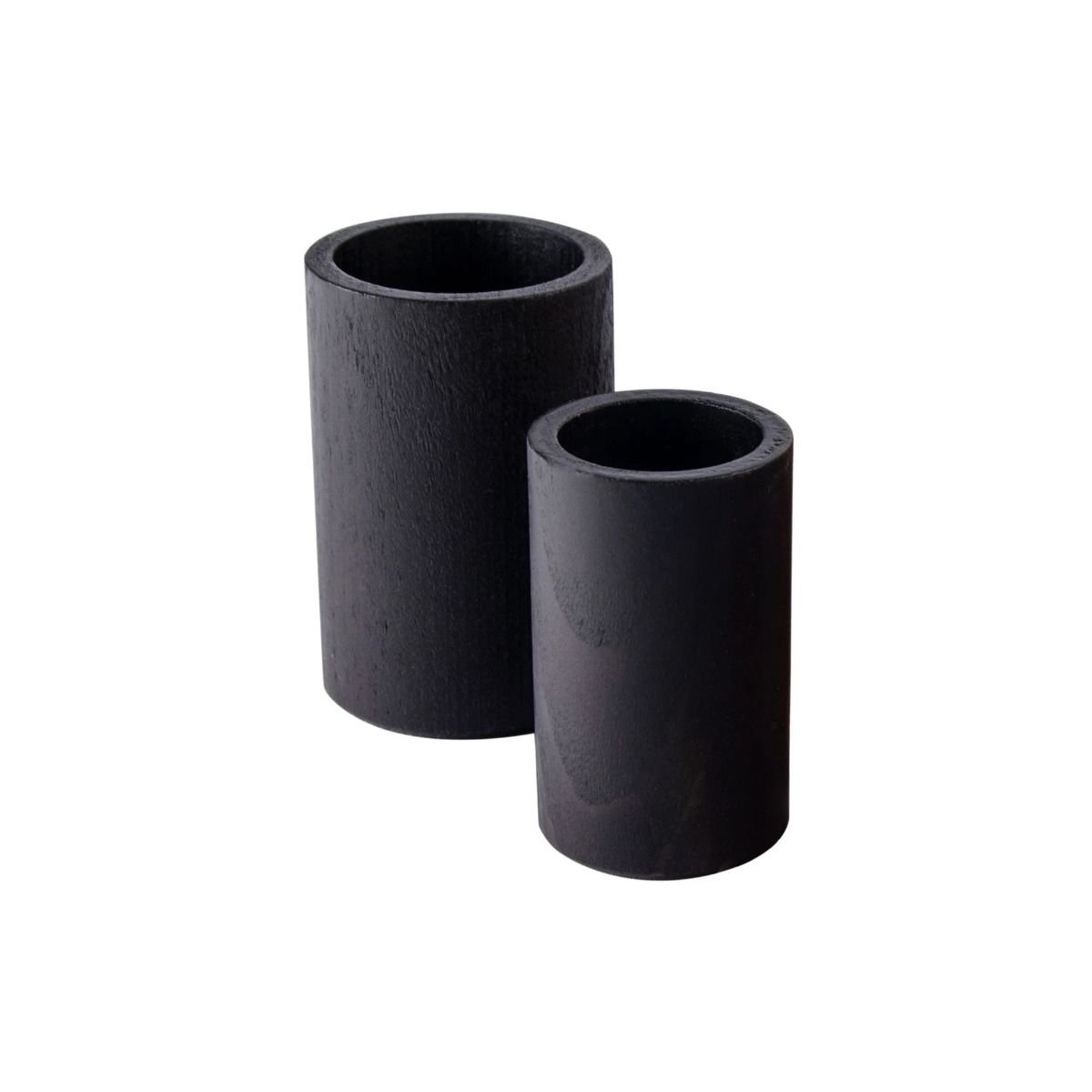 Комплект от два броя дървени чашки за зарчета, оцветени в черно.