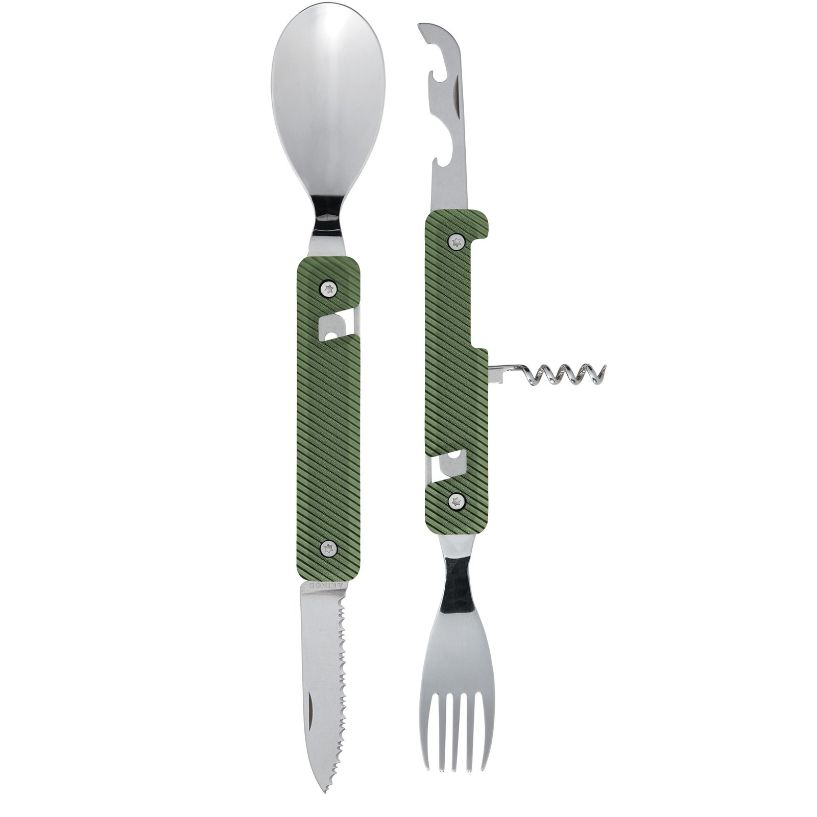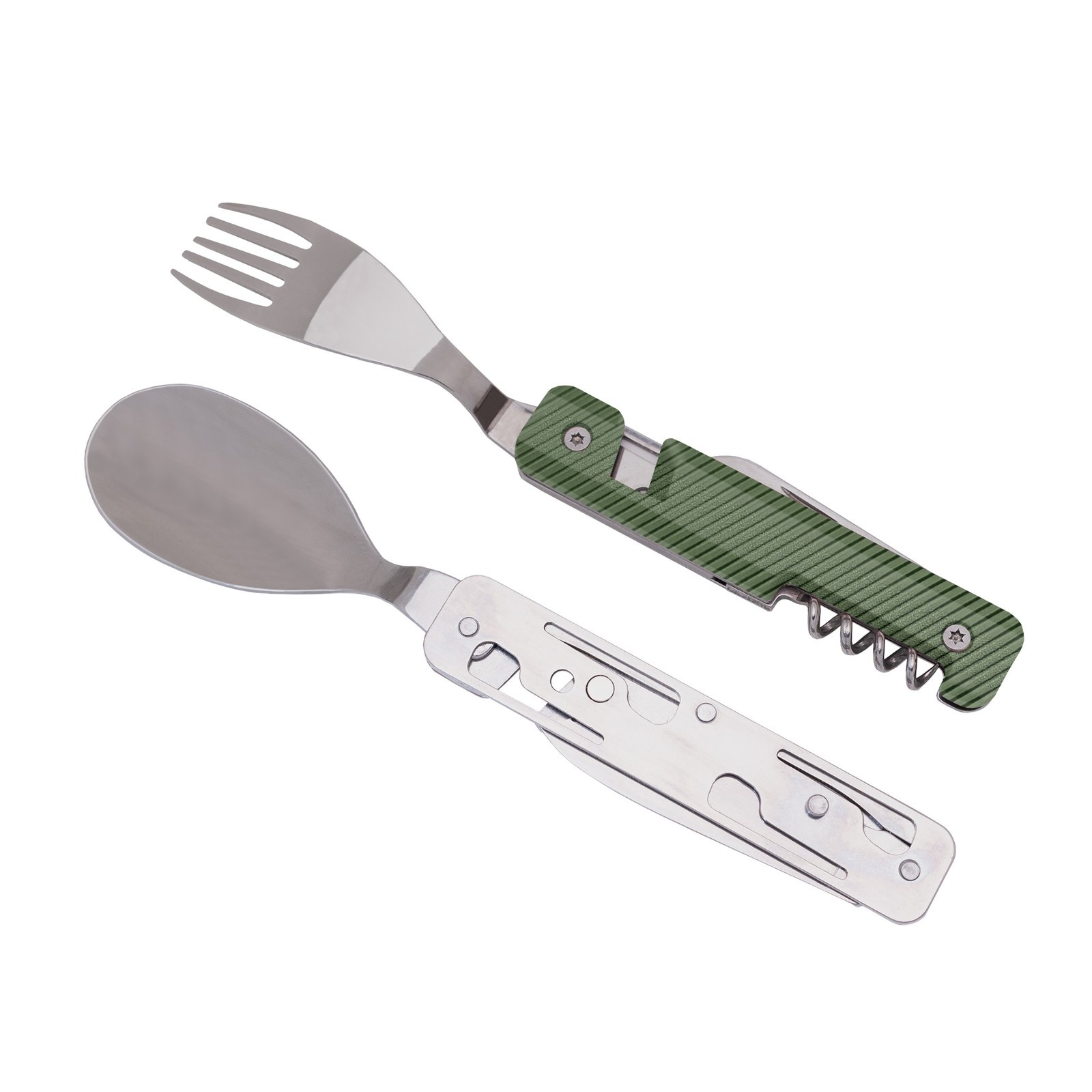 Този невероятен комплект мултифункционални прибори за хранене е изработен от висококачествена мартензитна неръждаема стомана 2CR14 с изключително полирано огледално покритие. Подходящ за къмпингуване и пикник. Сега на ТОП цена от Portmoneta.bg