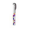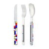 Този набор включва голяма лъжица, вилица с 4 зъба и нож с микронабраздено острие, които са идеални за всеки вид ястия. Дръжката им е изработена от цветен алуминий, който придава модерен и стилен вид на комплекта.
