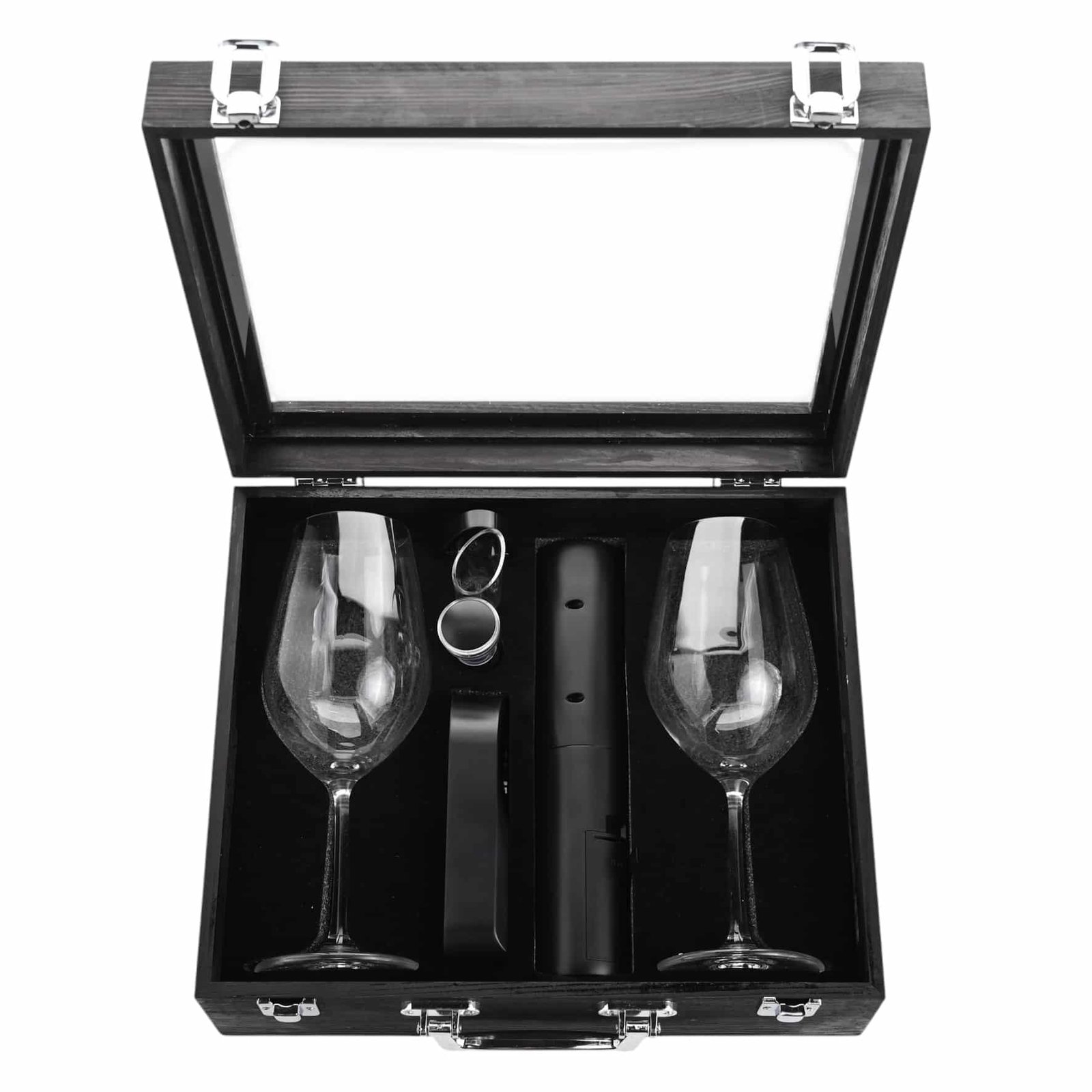 • Включва две елегантни, прозрачни чаши за вино, за да се насладите на любимата си реколта.