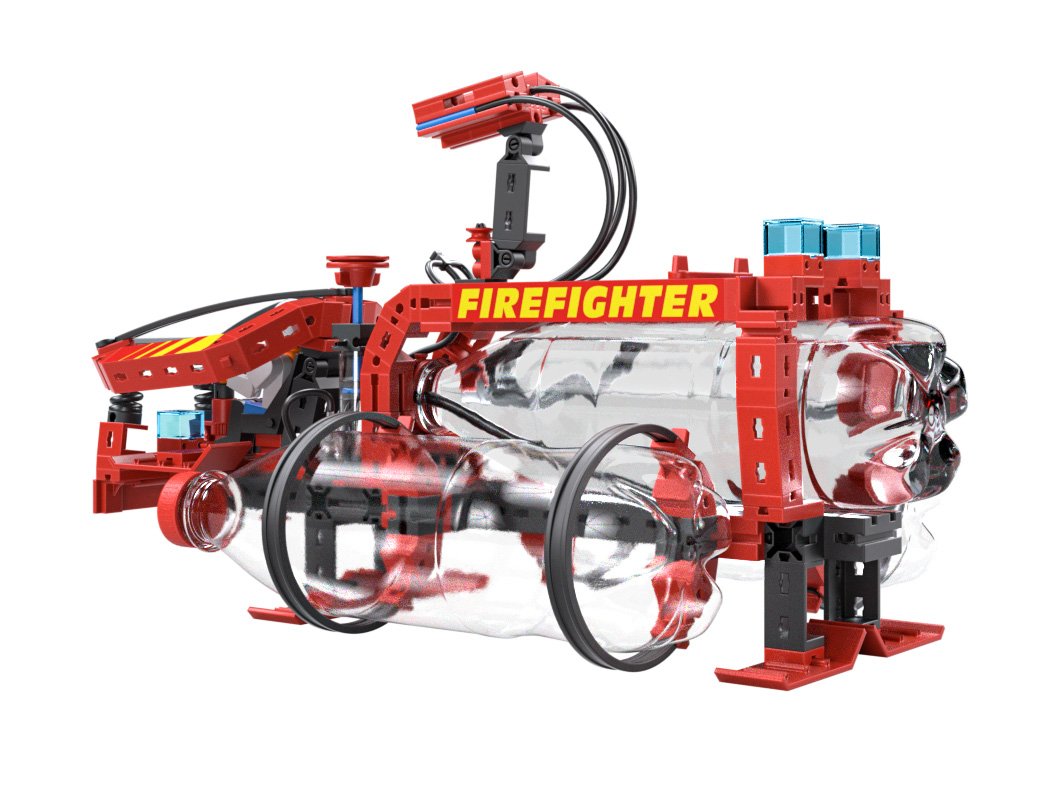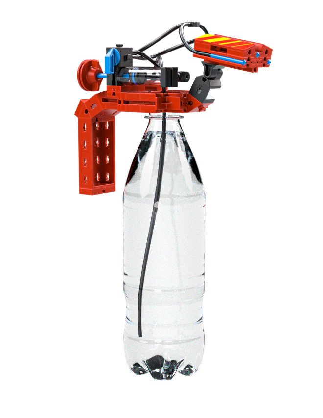 С въздушната помпа, включена в комплекта, децата могат да създадат налягане във водния резервоар от PET бутилката. Когато клапанът се отвори, водата се разпръсква от прикрепения пожарен маркуч, който допълнително подчертава връзката между налягането на въздуха и водата. Така, чрез играта, децата могат да усвояват и разбират основни принципи на физиката, като се забавляват.
