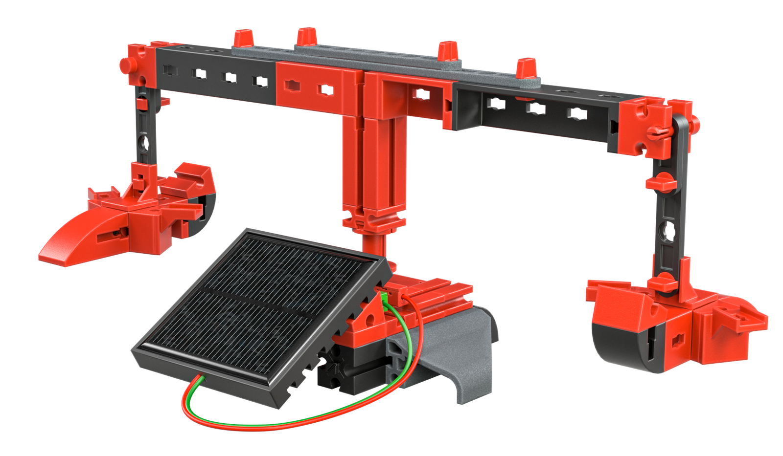 Играчките, базирани на слънчева енергия, са идеалният начин за въвеждане на малките ученици в света на възобновяемата енергия и за стимулиране на тяхната любознателност и откритост. Например, новият соларен конструктор "Слънчева енергия" на fischertechnik предлага множество различни модели, които обещават забавление и разнообразие в процеса на изследване на силата на слънцето. Когато облаците изчезнат и слънцето просветне, децата имат възможност да изследват въздушното пространство със самолети и хеликоптери. Вятърната мелница и въртележката също се въртят с максимална скорост при слънчево време, предоставяйки още един начин за въвеждане в темата за възобновяемата енергия.