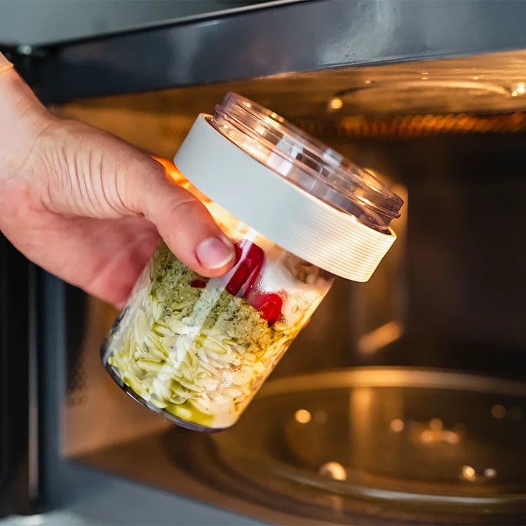 Специално проектиран, за да отговаря на вашите нужди за подгряване на храна в микровълнова фурна, този контейнер с лекота се интегрира във вашия комплект за хранене. Неговата функционалност ви позволява да запълните микроконтейнера с вашите предпочитани ястия, след което го поставяте директно в микровълновата. Така вие лесно и бързо можете да се насладите на топъл обяд или закуска, докато сте в  движение.