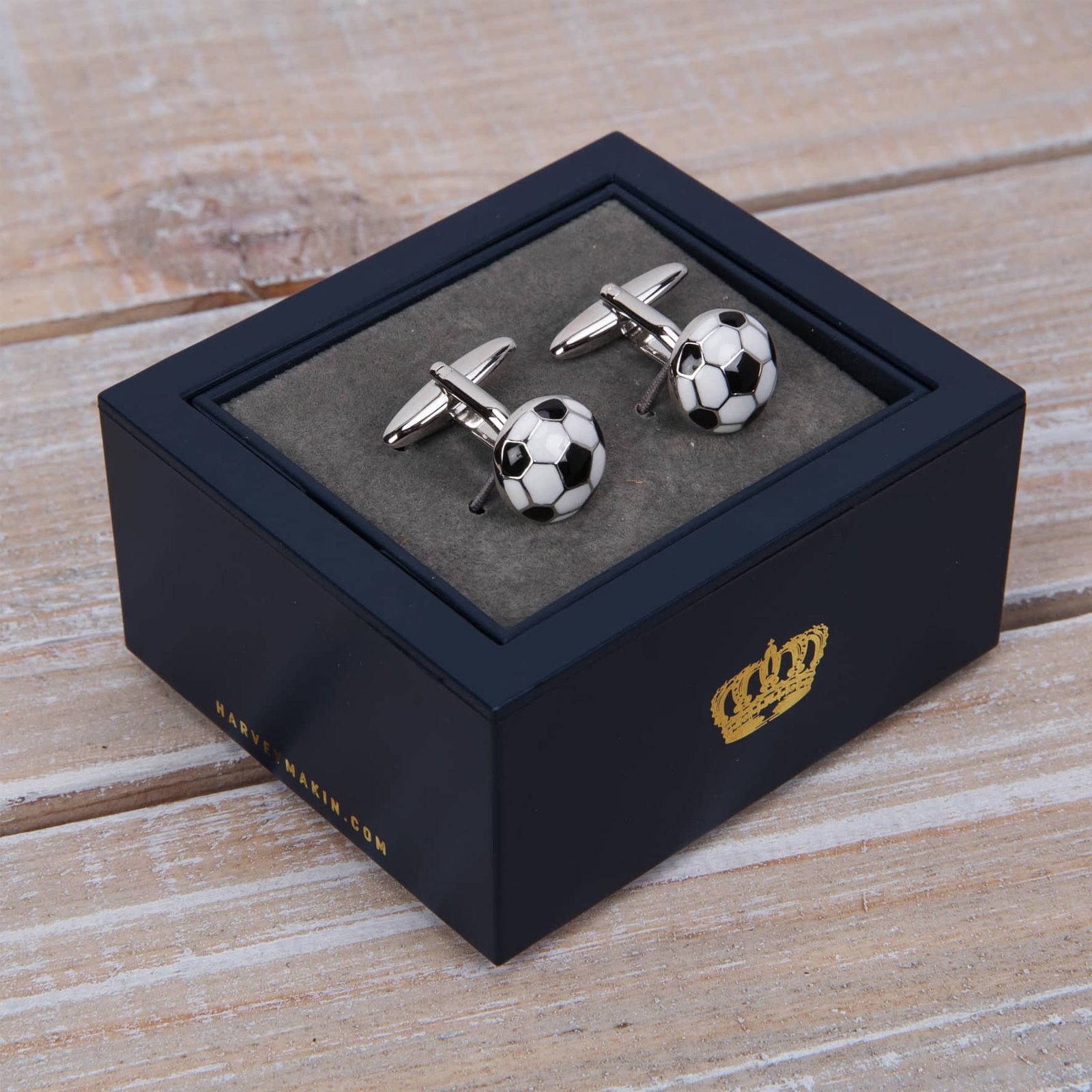 Необичаен и впечатляващ комплект копчета за ръкавели HARVEY MAKIN® с дизайн на две футболни топки.