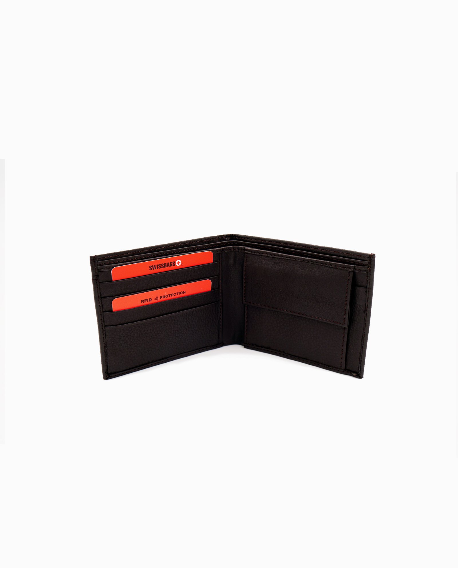 Кожен хоризонтален портфейл Swissbags с вложка, кафяв