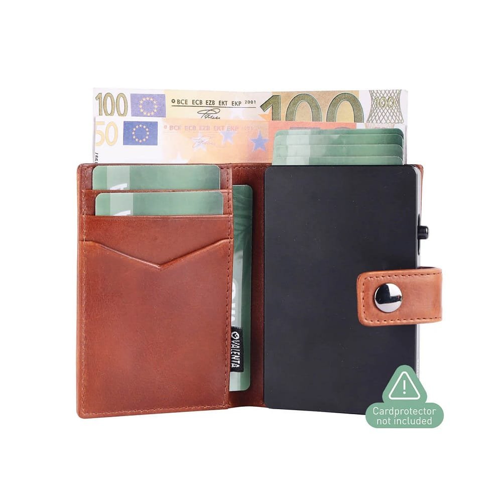 Търсите стилен и функционален начин да защитите вашите карти и пари? Освен че имате възможност да носите само картодържателя без целия си кожен портфейл, този нов кожен портфейл MagSafe от Valenta е точно това, от което се нуждаете. Този черен кожен портфейл е специално проектиран за да се комбинира с нашия тънък алуминиев картодържател с MagSafe, което ви позволява да създадете своя собствена уникална и удобна комбинация.