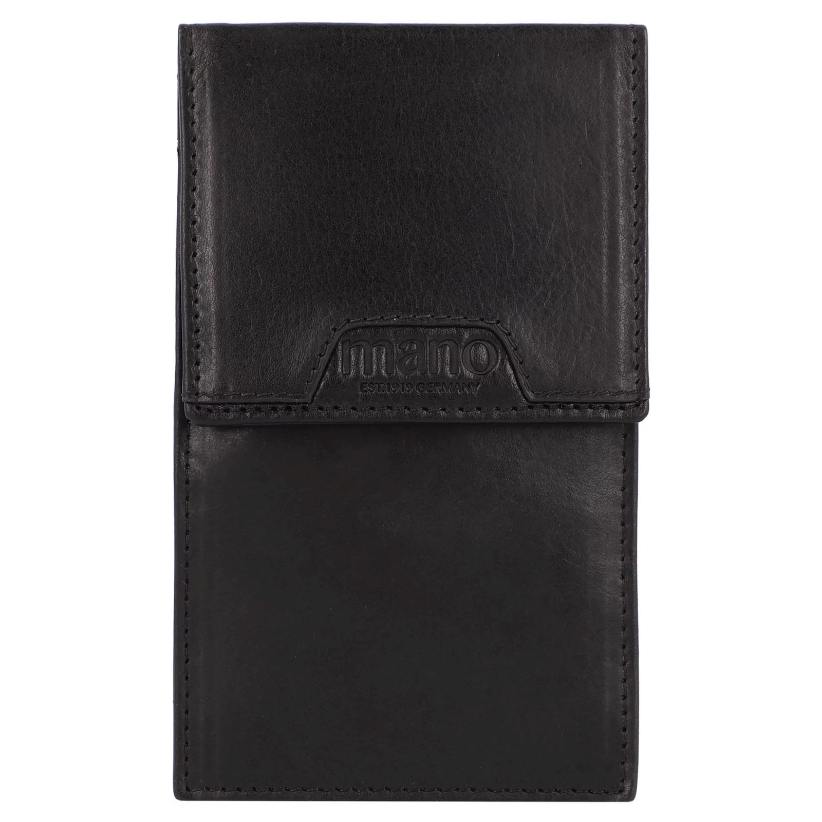 Стилен кожен калъф за ключове от известната немска марка Mano. Клаъфа за ключове е проектиран във вертикално ориентиране. Във вътрешносттта си разпллага с ключодържател и специлано отделение за карти.