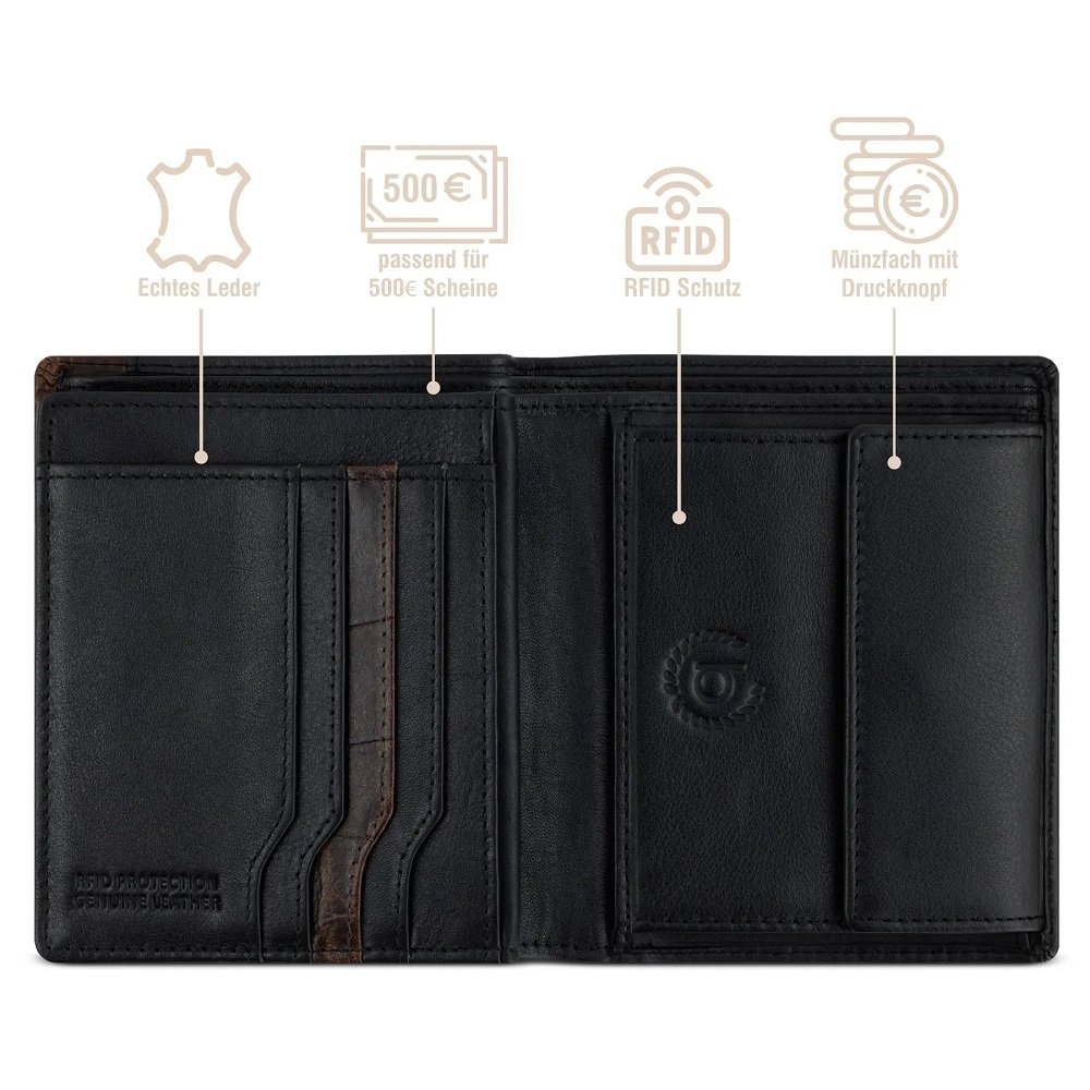 Дизайнът на портфейла е компактен и удобен за носене в джоба на дрехите или във вашата чанта. Черният цвят добавя класически дизайн и го прави подходящ за всякакъви стилове и поводи. С Bugatti Corso DeLuxe Wallet Upright вие не само получавате стилен аксесоар, но и практично и сигурно решение за съхранение на вашите банкноти, карти и монети.