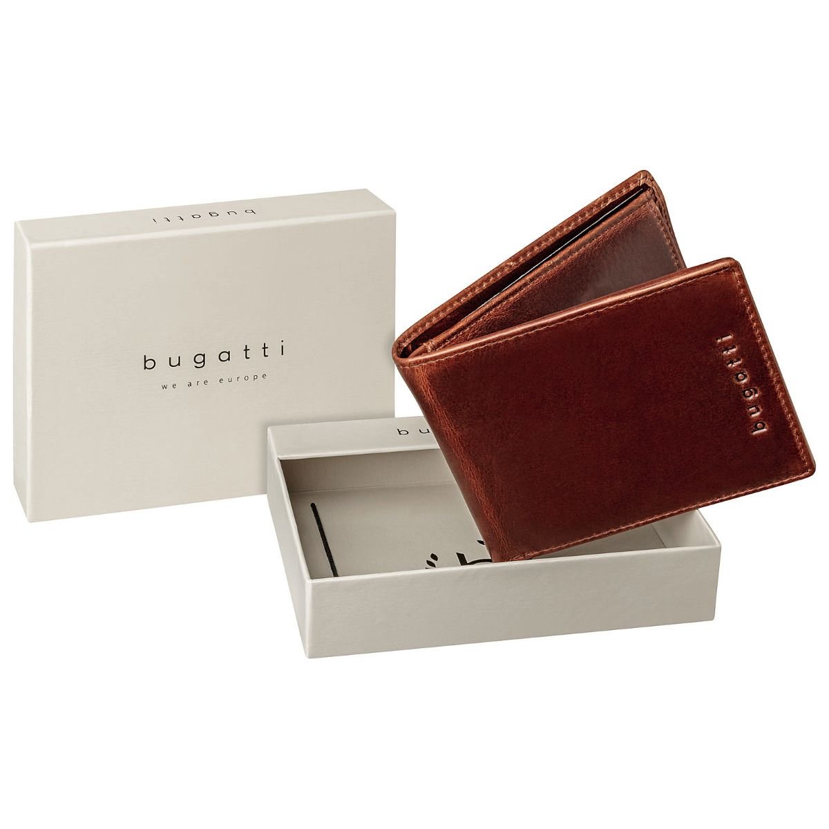 Мъжки портфейл с RFID защита. Портфейлите и калъфите на Bugatti от серия Romano използват патентования материал Cryptalloy®, за да защитят Вашите лични данни от неоторизиран достъп. Cryptalloy® е TÜV сертифициран и е вграден в меката телешка кожа.