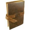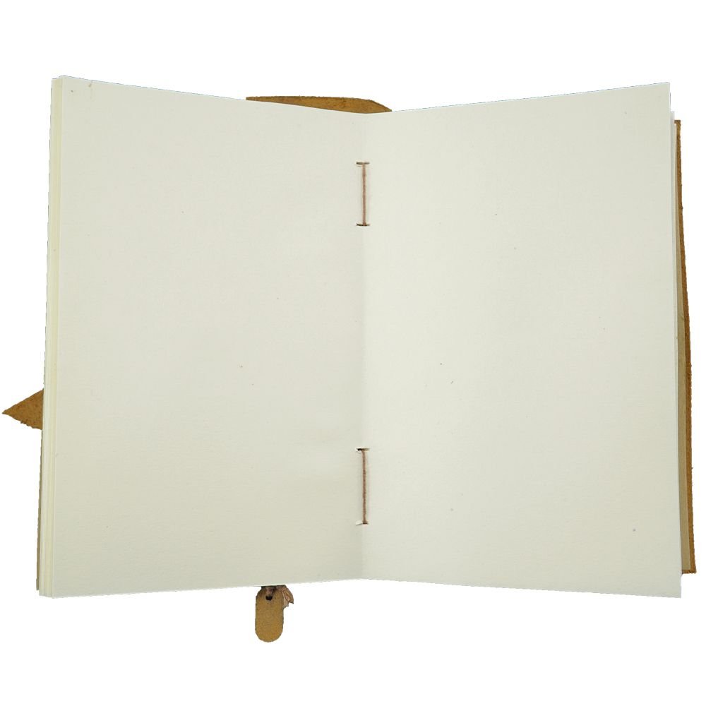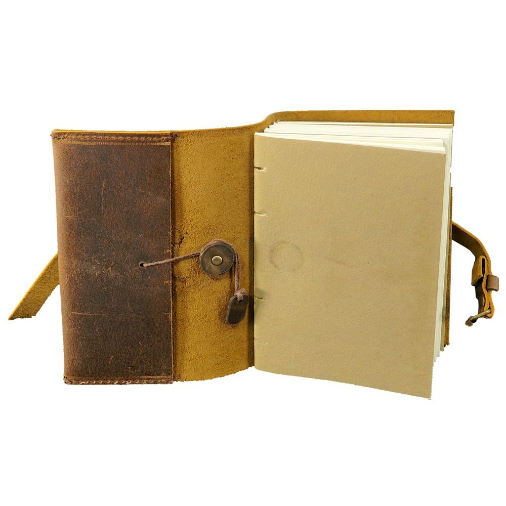 Ретро тефтер с подвързия от естествена, омаслена кожа, въжена отбелязка с кожен накрайник и добавен ремък с метална катарама. Книжното тяло е закрепено към корицата с конопени конци и е от ръчно направена памучна хартия. Допирът до дебелата, структурна хартия и естествената кожа, навява усещането за дневник от пиратски кораб, далечни страни, съкровища и пътешествия на загадъчни места. Закопчаването ще пази Вашите тайни планове на сигурно място.