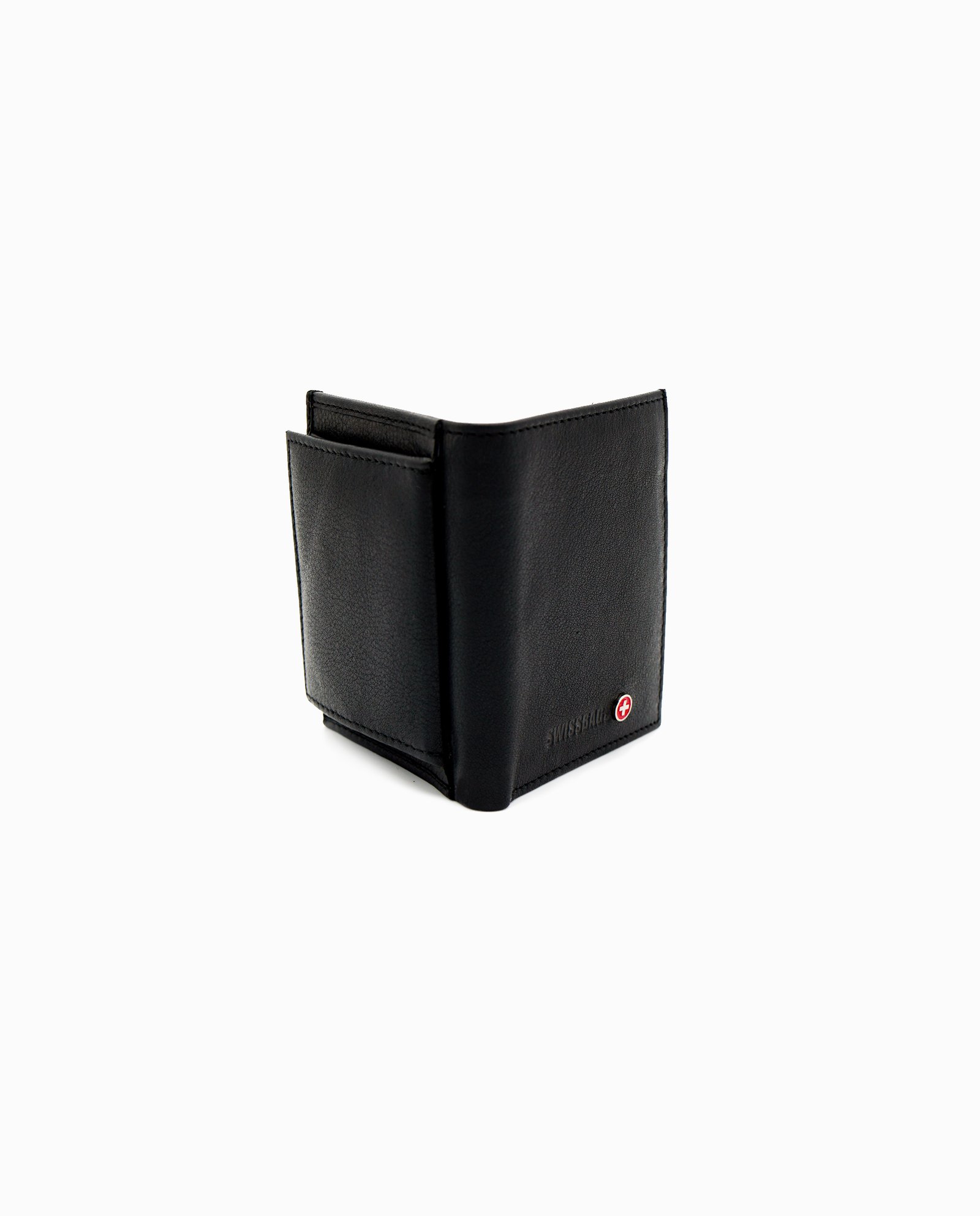 Кожен вертикален портфейл Swissbags с монетник, черен