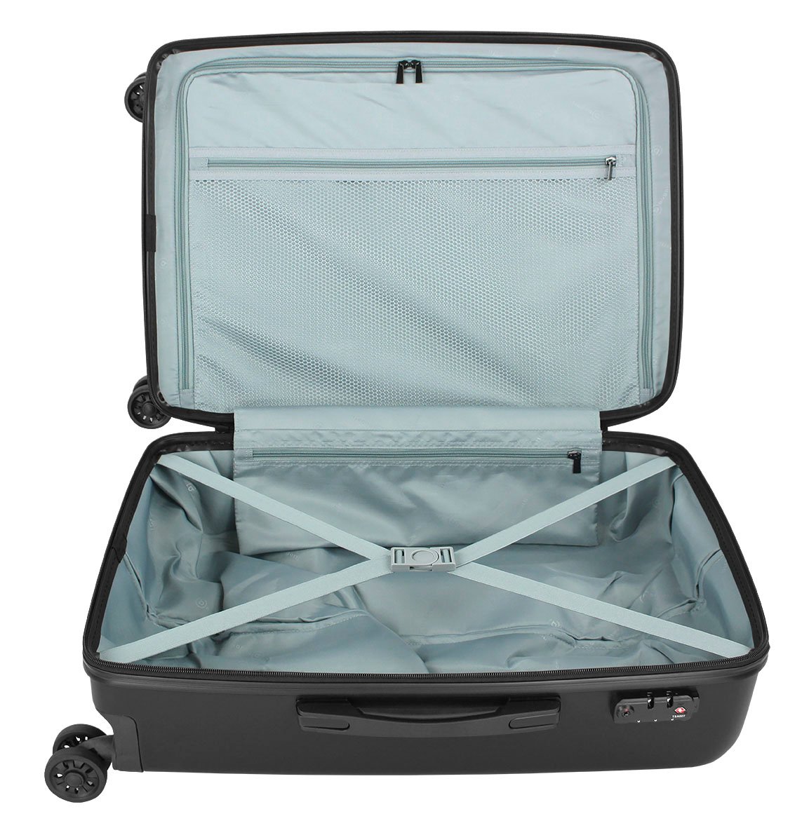 Куфара е подходящ за пътувания с различен вид транспорт, като: Самолет, Автобус и Влак. Куфара Bugatti Kallisto Hard Shell M черен е стилен и елегантен с високо качество на изработката и материалите.