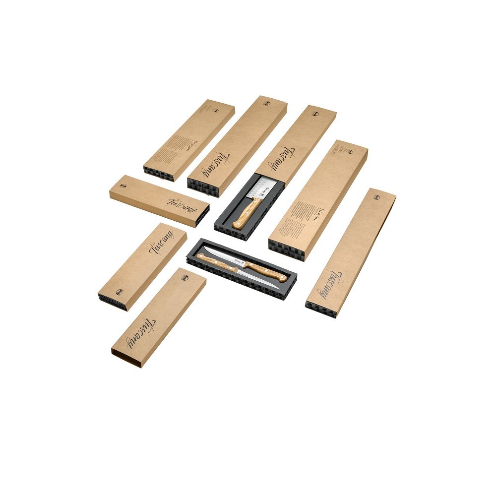 Кухненски нож Due Cigni Tuscany Santoku, с жлебове, 18 см, маслиново дърво