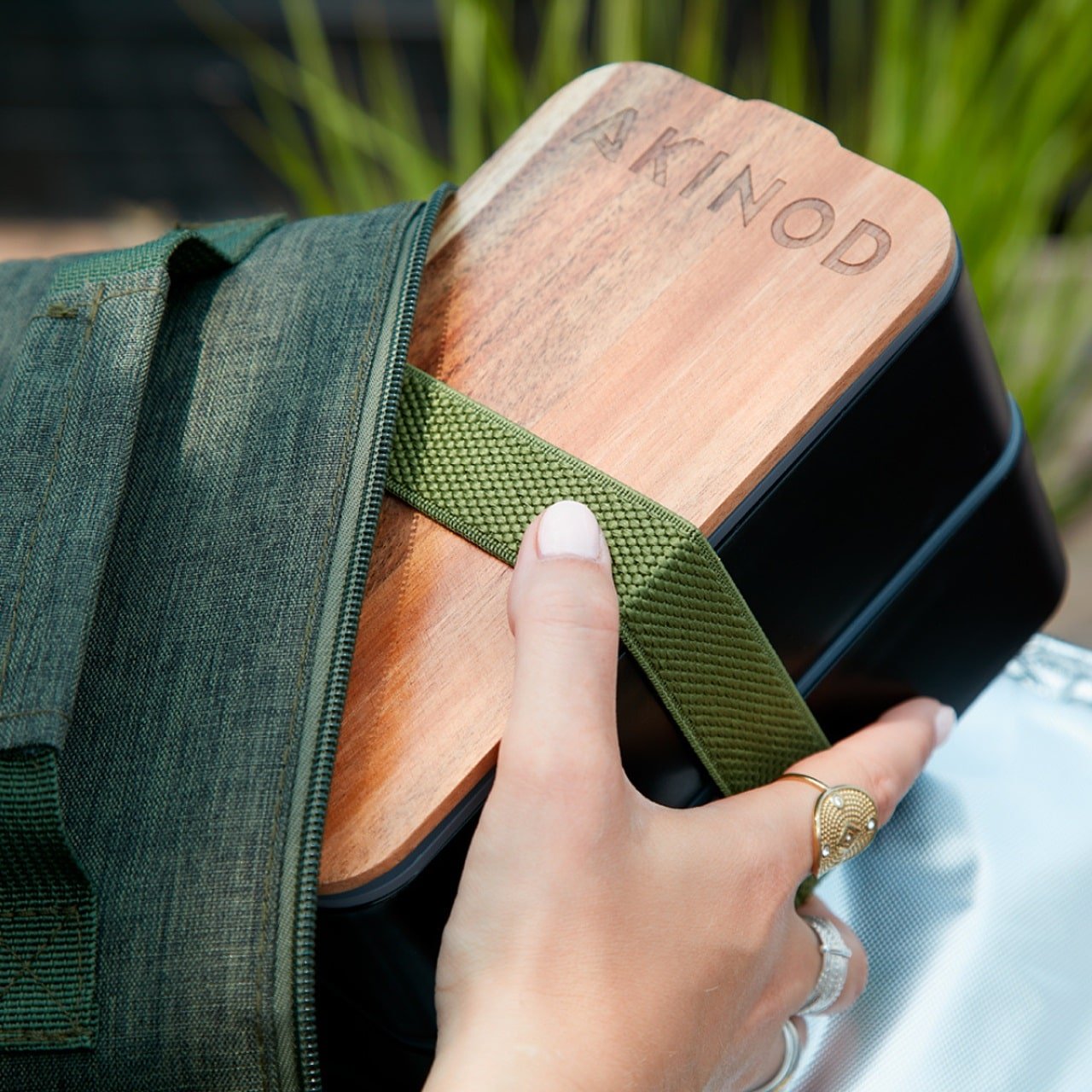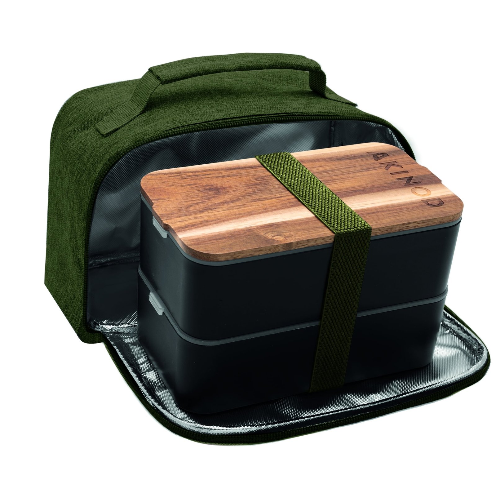 Кутия за храна и чанта Akinod Bento + Lunch Bag 11h58, Black / Green khaki