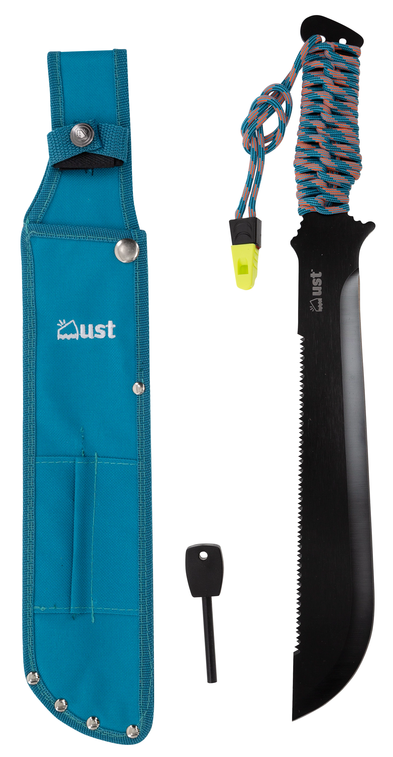 Дръжката на мачетето е паракорд ParaTinder, който осигурява сигурно захващане при всякакви метеорологични условия.