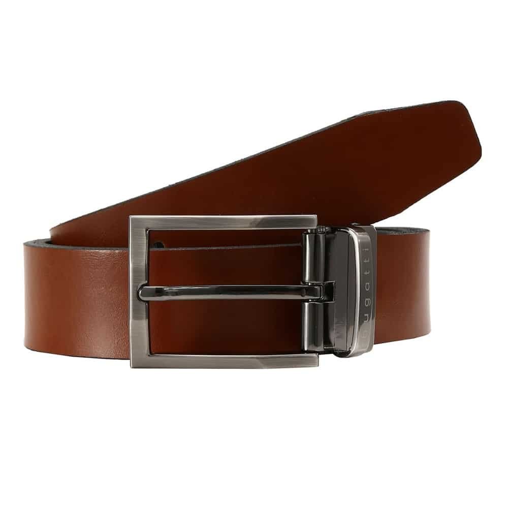 Мъжки кожен двустранен колан Bugatti, коняк/черен, 95 см
