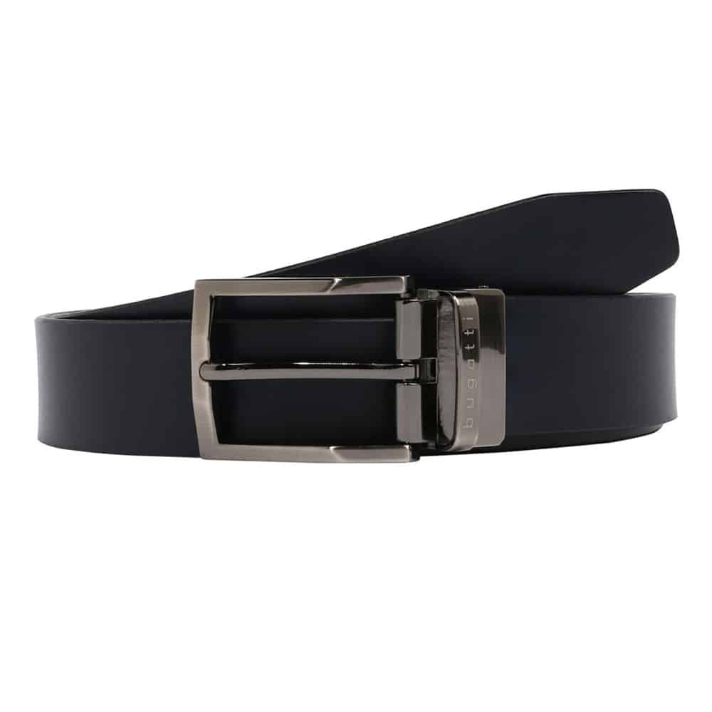 Мъжки кожен двустранен колан Bugatti, тъмносин/черен, 120 см