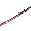 Черна tsuka-ito (обвивка на дръжката) не само придава на меча елегантност и стил, но и осигурява комфорт и сигурно захващане при употреба. Японските йероглифи, които са изписани върху червената-кафява дървена saya (канията на меча), придават допълнителен автентичен вид на цялостния дизайн. Saya е завършена с типичния сагео шнур, който не само е декоративен, но и функционален, позволявайки лесно прикрепване към колана за носене.