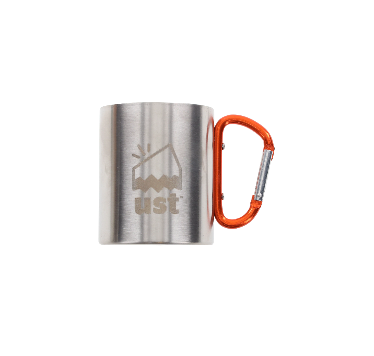 чаша с двойни стени има 8 см. оранжев карабинер, който служи за дръжка и създава