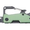 Мини инструмент с 10 функции, нож, малък ключодържател с карабинер, отварачка за бутилки, 3 отвертки (2 кръстати, 1 права), шестограмен ключ (4 размера), малко длето, линийка (5 см), обтегач за нипел (инструмент за спици), алуминий / неръждаема стомана, зелен / стоун уош