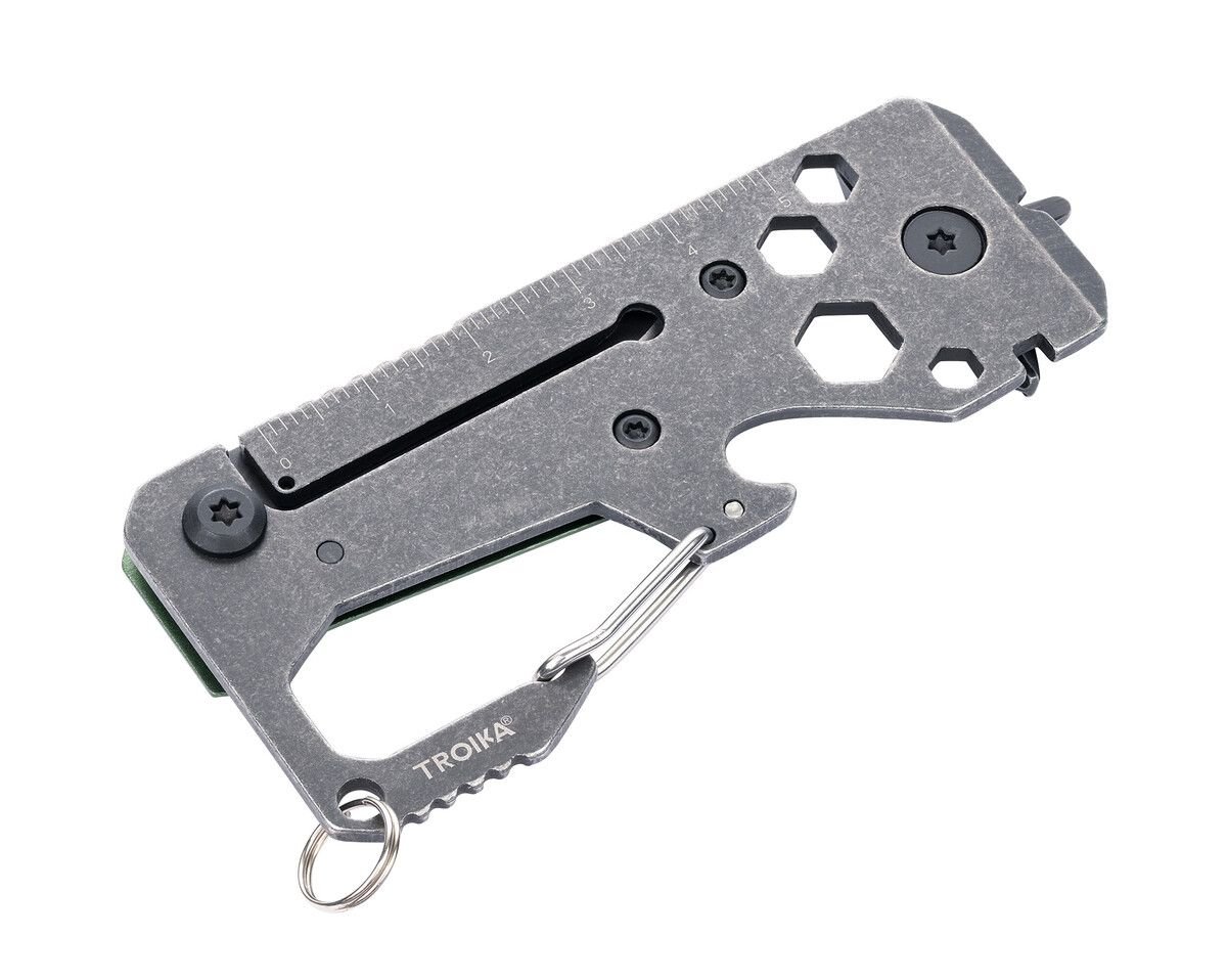 Многофункционален мини инструмент/ключодържател Troika – TOOLINATOR CARD, зелен