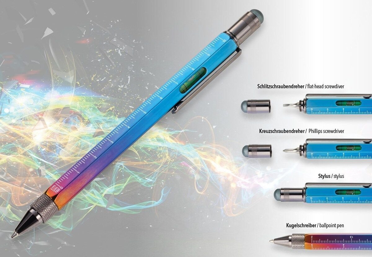 Многофункционална метална химикалка TROIKA, регистриран дизайн със следните възможности:
