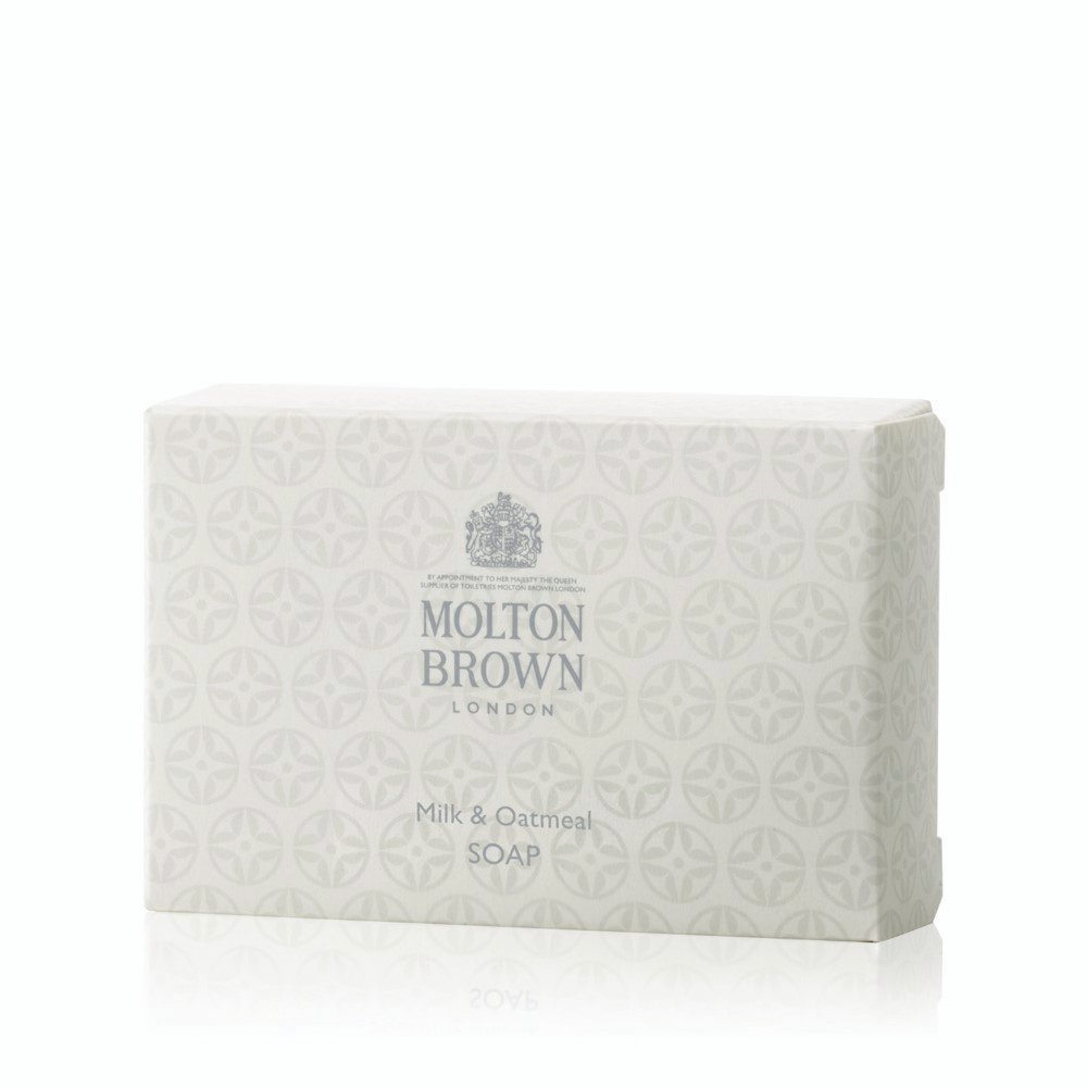 Molton Brown, Milk & Oat сапунът на прочутата английска марка е перфектното решение за нежно почистване и овлажняване на кожата. Създаден от висококачествени съставки, този сапун предлага релаксираща грижа за кожата, докато ви подарява свеж аромат и усещане на лукс.