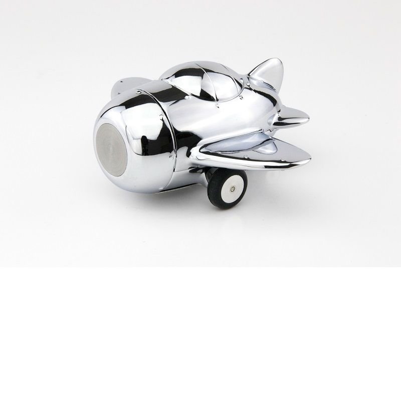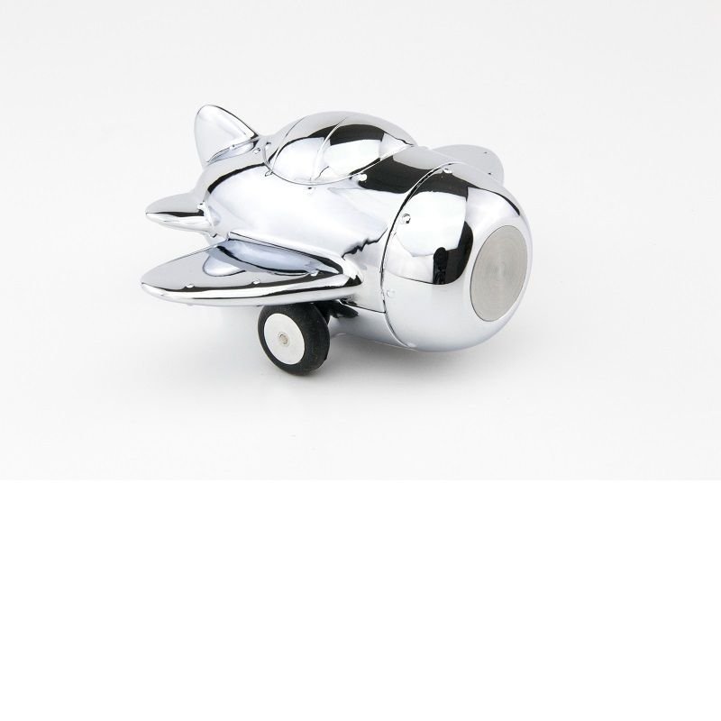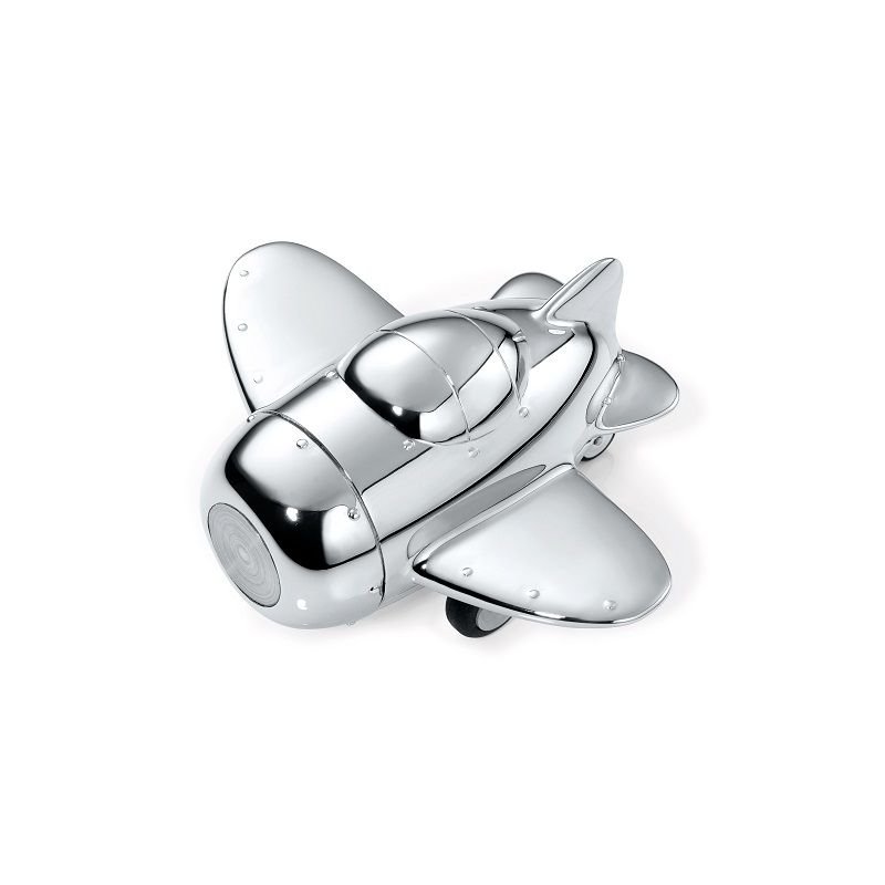 Настолен държач за кламери във формата на самолет, тежест за хартия с магнит за кламери, вкл. 5 кламера, с пружинен мотор, полиран хром.