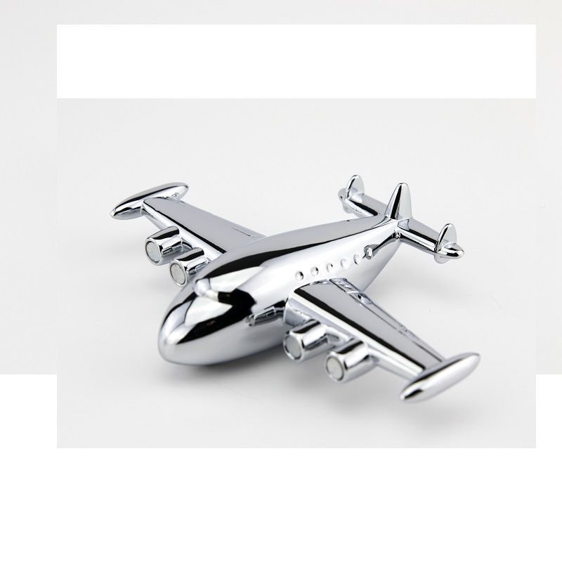 Настолен държач за кламери във формата на самолет. Преспапие с магнит за кламери, включва 5 кламера, с пружинен мотор, полиран хром.