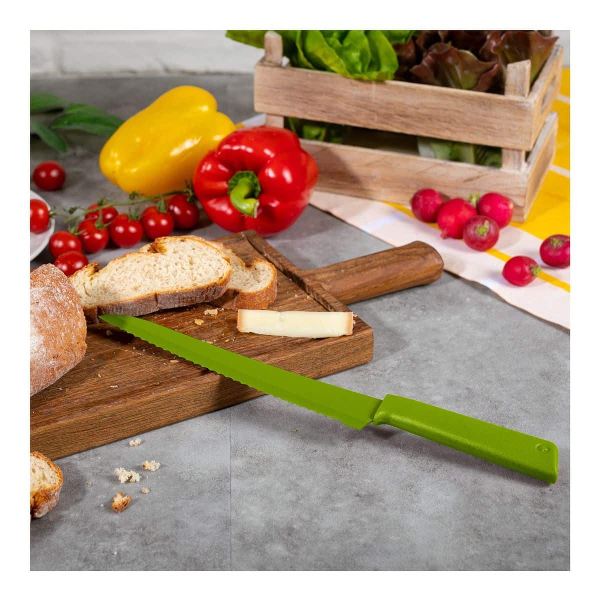 Нашият нож за хляб COLORI®+ с дръжка за сигурно захващане е ултра остър по много начини - качество, производителност, цвят и швейцарски дизайн. Назъбеното острие реже лесно хляб, както и домати.
