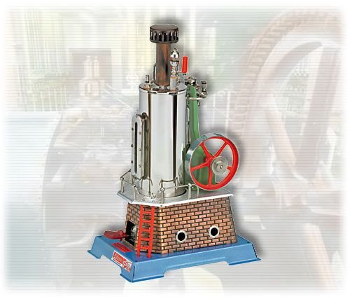 Работещ мини модел на вертикален парен двигател - Wilesco D455. Вертикална огледално полиран и никелиран котел с диаметър 65 мм, височина 175 mm и обем 500 cm³, допълнителен котел-димоотвод с диаметър 20 mm, вграден в главния котела, за да се подобри ефективността и за отвеждане на отработените газове. Пещта е близка до реалността, стената е тухлена с меден цвят. Пасарелка с парапети и стълба. Пружинен предпазен клапан, куполна свирка, паров регулатор, маховик с диаметър 80 mm, с голяма шайба с жлеб, алуминиев лагер.