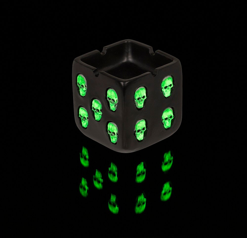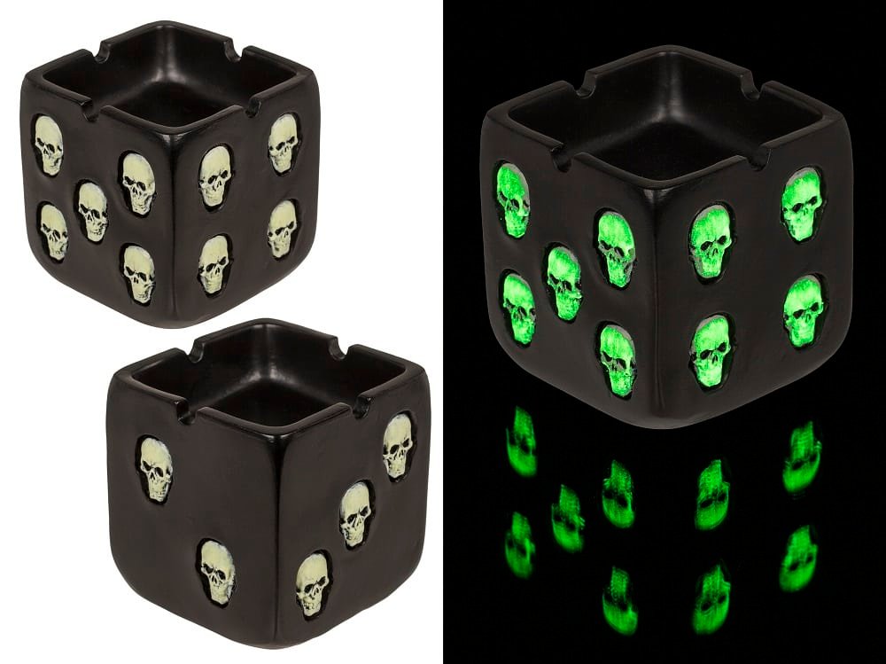 Пепелник с черепи, светещи в мрака.