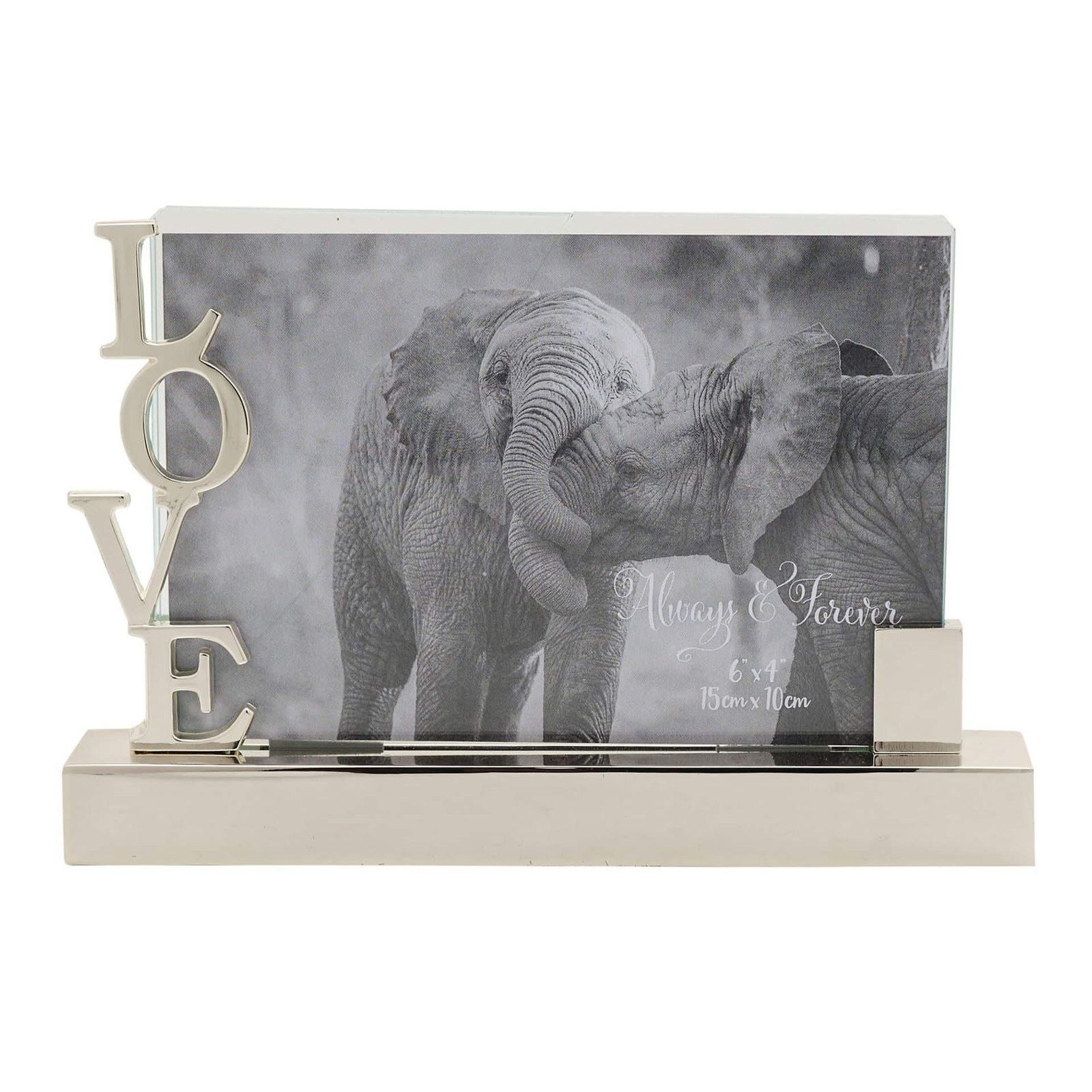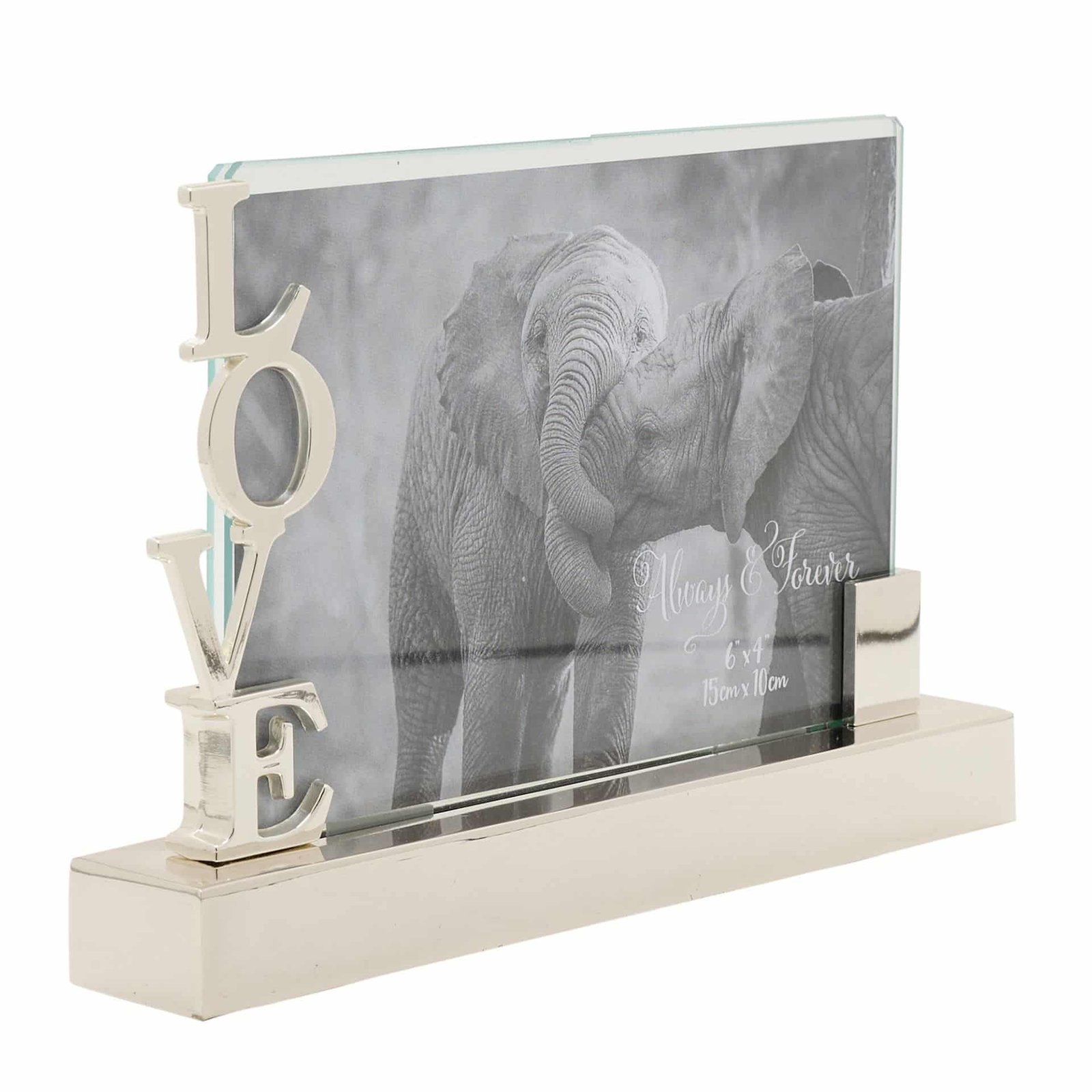 Посребрена рамка 15 x 10 Love от Always & Forever от CELEBRATIONS®, зашеметяващ начин да покажете ценни спомени. Тази изящна рамка е щателно изработена от стъкло и основа с лъскаво посребрено покритие.