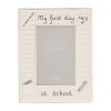 Рамката има текстурирани линии, създаващи впечатление за страница от учебник, и е чудесен начин да се покаже ценният спомен от първия учебен ден.