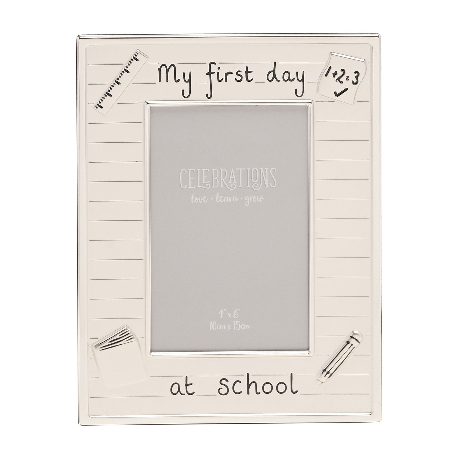 Посребрена фоторамка от CELEBRATIONS® за първия учебен ден на детето.