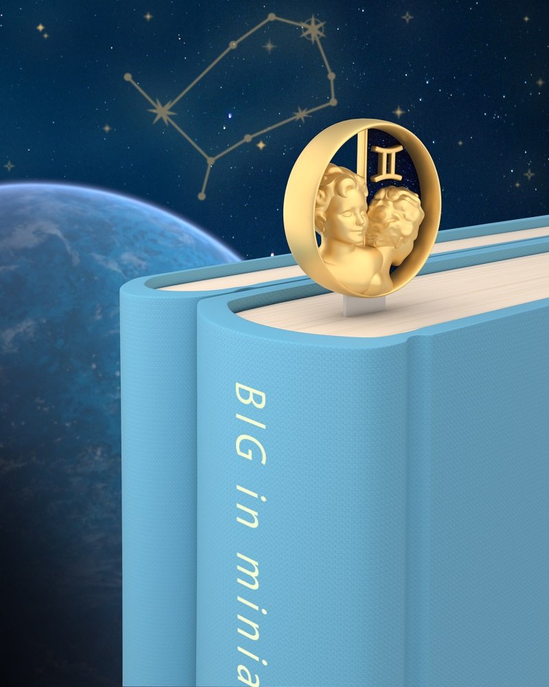 Добавете стил и индивидуалност към своите книжни моменти с изискания разделител за книги Horoscope Gemini. Посветен на зодия Близнаци, този аксесоар улавя двойнствената природа и живия интелект, които са характерни за представителите на тази зодия.