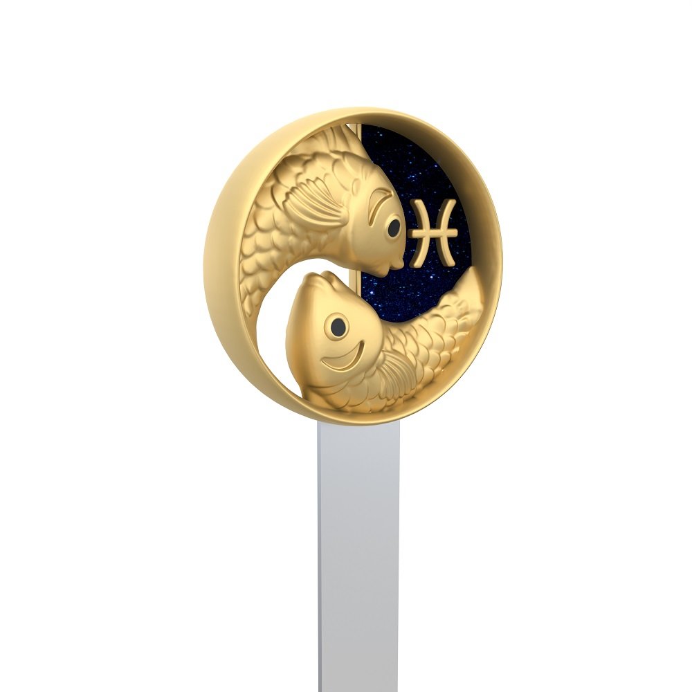 Знакът на зодия Риби е акцентиран с блестящи детайли, които създават ефект на нежно сияние, допълващо изискаността на дизайна. - Уникален зодиакален символ: