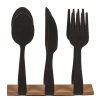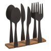 Вземете елегантност и функционалност във вашия дом с този стилен салфетник. Той представлява изискана комбинация от черни метални прибори за хранене и изчистена дървена основа, които създават уникален и привлекателен аксесоар за вашата трапезария или кухня.