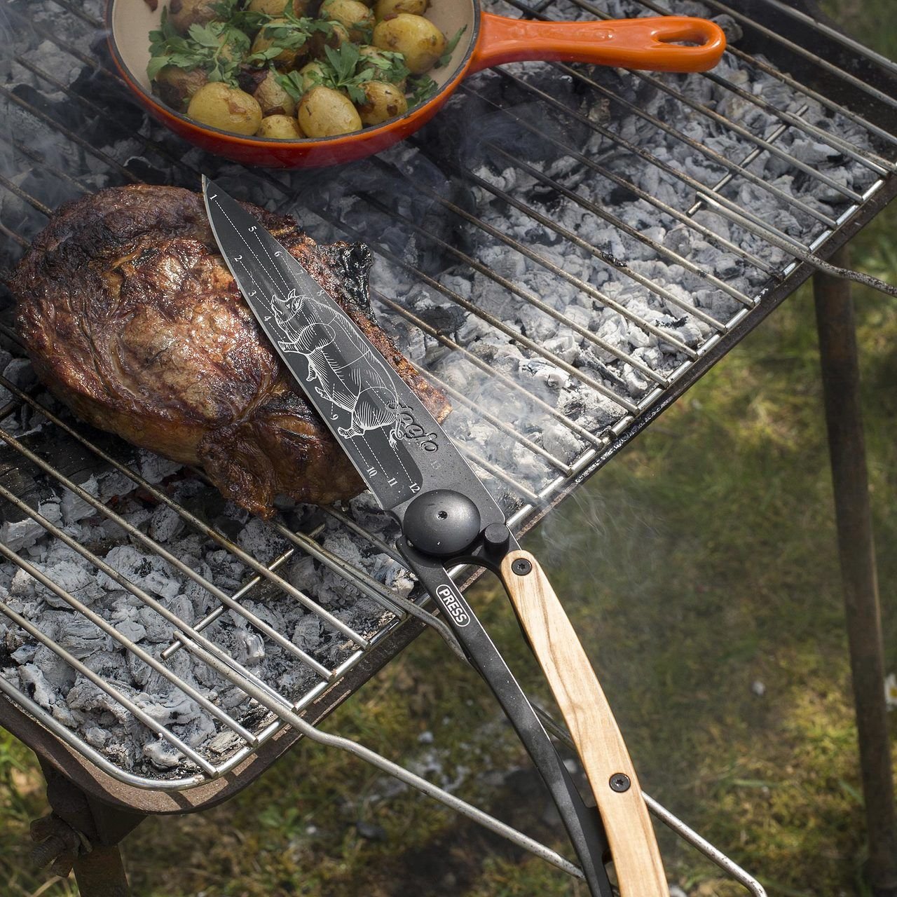 Топлите и привлекателни тонове на маслиново дърво създават визуален шедьовър, който резонира с автентичността на ръчно изработеното съвършенство. Отвъд зашеметяващата си естетика, ножът Deejo 390g може да се похвали с дизайна Prime Cuts. Дизайна е символ на кулинарно майсторство и гастрономическа страст. Този сложен дизайн отдава почит на изкуството за приготвяне на първокласни разфасовки, издигайки ножа до визуално представяне на кулинарното изкуство.