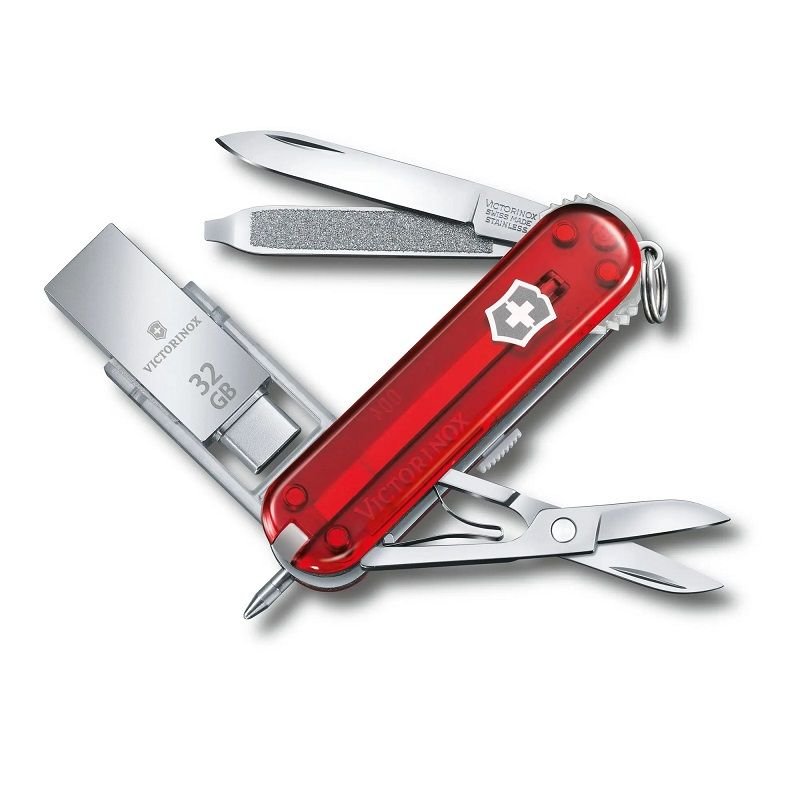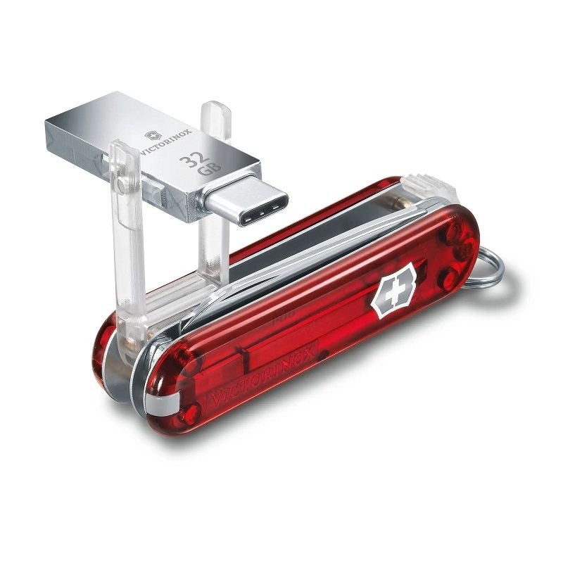 Запознайте се с нашия нов джобен нож Victorinox@work. В него е вградена подвижна USB 3.0 / 3.1 флашка, която осигурява 32 GB място за съхранение на дании в допълнение към осемте практически функции на ножа. Така че независимо дали сте у дома, в офиса или на път, този джобен нож ще отговори на вашите нужди.