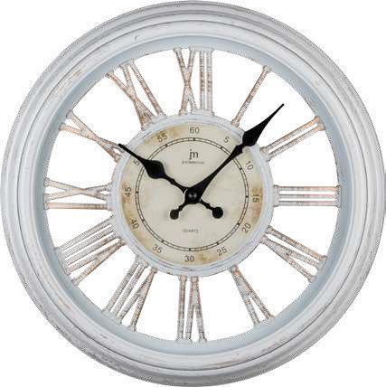 Стенен часовник Lowell / Justaminute, ABS корпус, антик, Ф36 см, бял