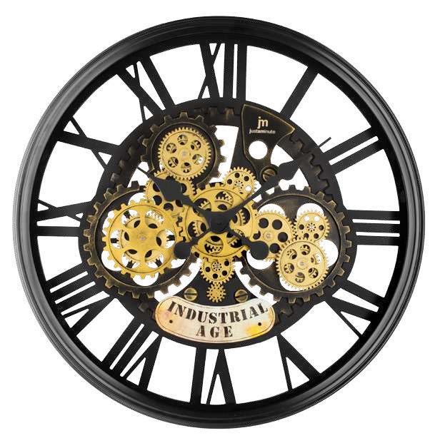 Стенен часовник Lowell / Justaminute, метален корпус, зъбни колела, Ф60, черен
