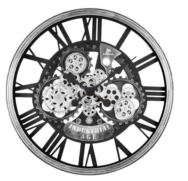 Стенен часовник Lowell / Justaminute, метален корпус, зъбни колела, Ф60, сребрист