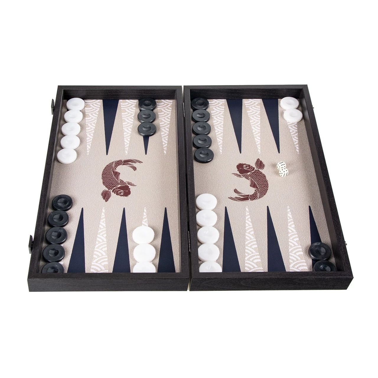Игрално поле: декоративен печат върху дървена основа с ламинат и лак, Черни и бели капии с далекоизточен дизайн;