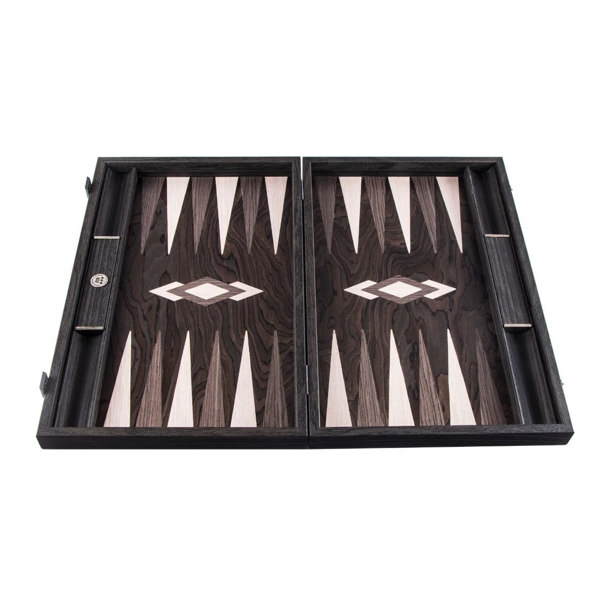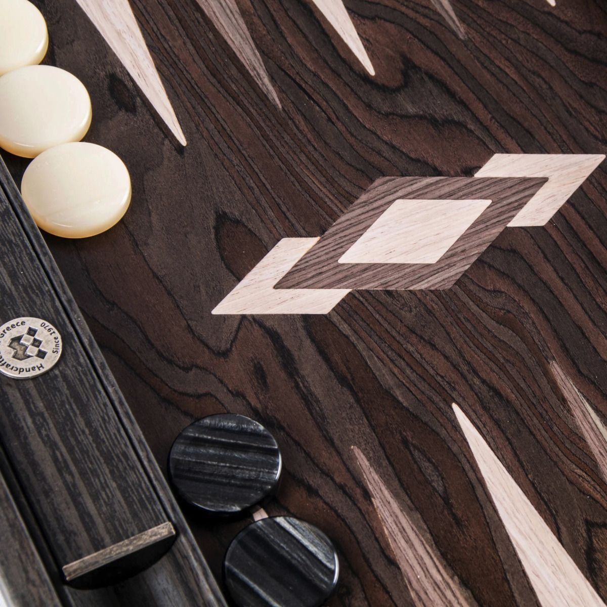 Таблата е ръчно изработена чрез техника "Интарзия", наричана също "Инкрустация", при която различните видове фурнир се режат на фигури от майстори артисти. Впоследствие фигурите се подреждат и влагат една в друга. По този начин се получава игрално поле с невероятна красота.