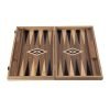 Таблата е ръчно изработена чрез техника "Интарзия", наричана също "Инкрустация", при която различните видове фурнир се режат на фигури от майстори артисти. Впоследствие фигурите се подреждат и влагат една в друга. По този начин се получава игрално поле с невероятна красота.