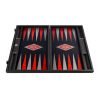 Таблата е ръчно изработена чрез техника "Интарзия", наричана също "Инкрустация", при която различните видове фурнир се режат на фигури от майстори артисти. Впоследствие фигурите се подреждат и влагат една в друга. По този начин се получава игрално поле с невероятна красота.