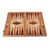 Таблата е ръчно изработена чрез техника "Интарзия", наричана също "Инкрустация", при която различните видове фурнир се режат на фигури от майстори артисти. Впоследствие фигурите се подреждат и влагат една в друга. По този начин се получава игрално поле с невероятна красота.