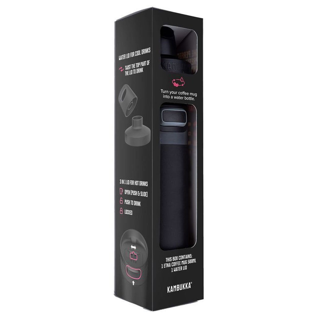Термочаша от неръждаема стомана Kambukka Etna с термокапак 3 в 1 Snapclean® и капак Reno, 500 мл, черен мат, кутия